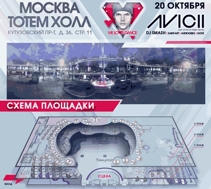 Итак, «Avicii-We Love Dance», Москва, 20 октября, Клуб «Totem Hall» (Тотем Холл) – самое жаркое событие этой осени, ну а купить билеты на ночную вечеринку «Avicii-We Love Dance» без наценки можно в РедКассе.