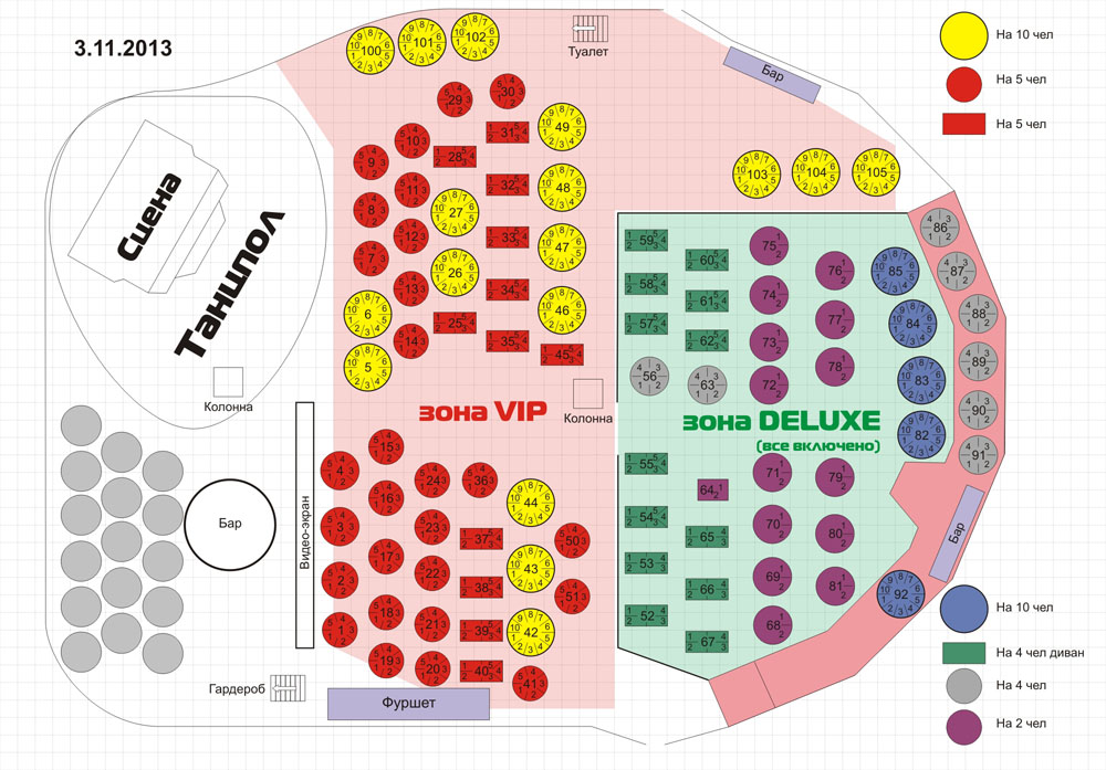 -Билеты VIP (столы на 5 чел) включают в себя входные билеты + меню: