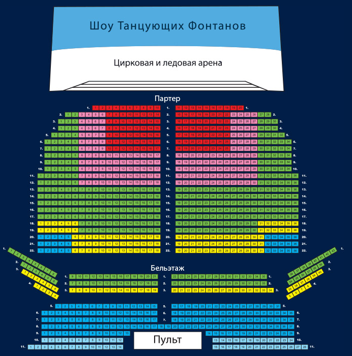 Стоимость билетов от 400 до 3500 рублей. Ценовая категория зависит от расположения мест в зале. На интерактивной схеме зрительного зала можно посмотреть, как будет видно шоу с вашего места. Один взрослый может провести по своему билету одного ребенка в возрасте до 6 лет включительно (без предоставления отдельного места).