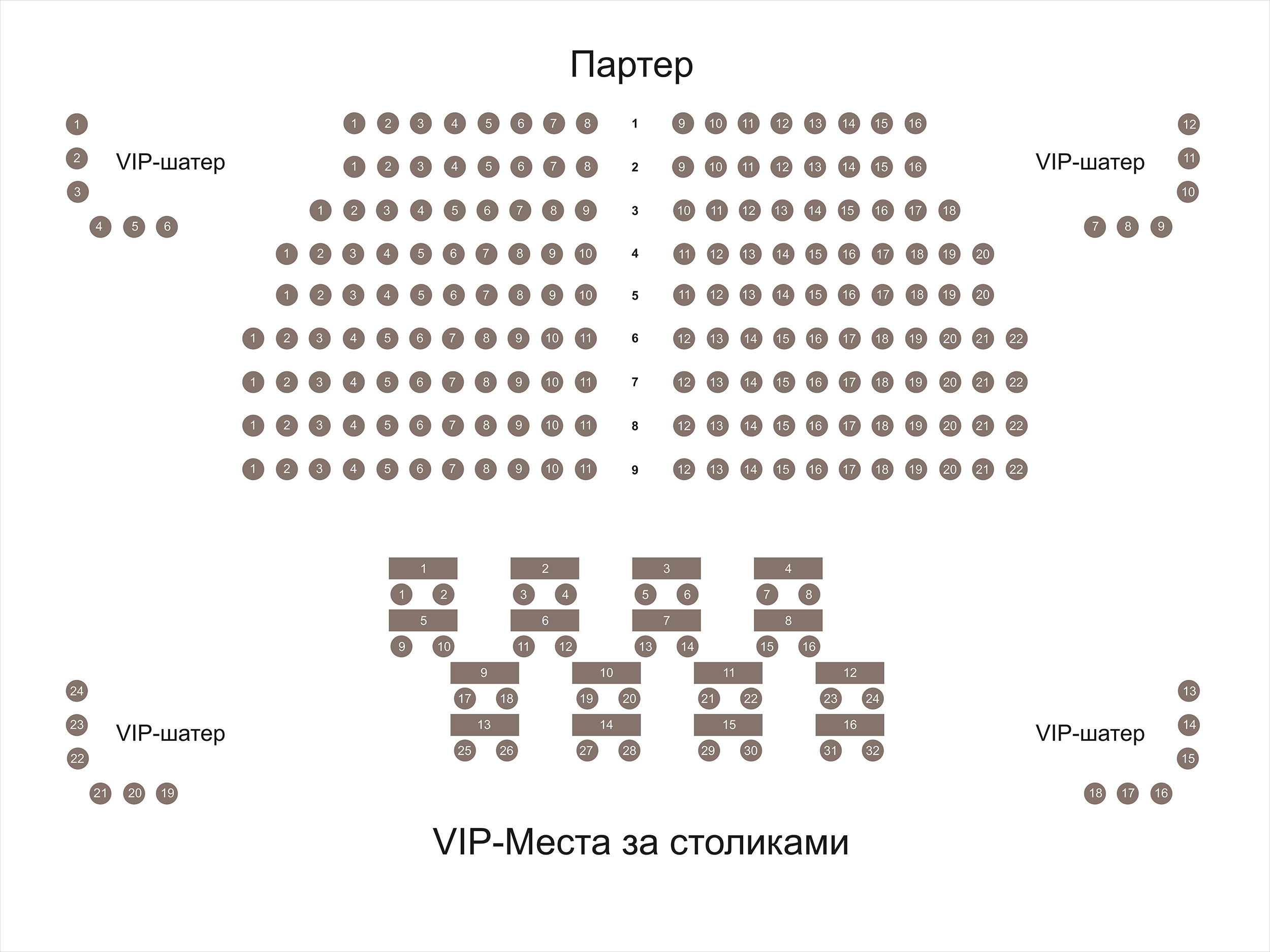 VIP-места за столиками - места на подиуме за столиками.