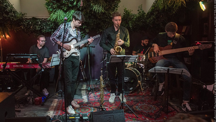 Исполнители: Евгений Побожий, гитара Антон Чекуров, саксофон Николай Сидоренко, клавиши Сергей Корчагин, бас Давид Сагамонянц, барабаны