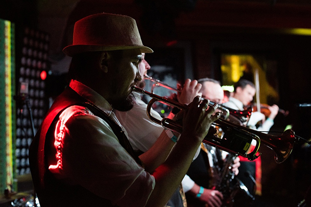 Когда воодушевленно выступает Exilados, всегда случается красочное и невероятно веселое шоу с участием профессиональных цыганских танцоров. На сцене: вокал, саксофон, аккордеон, кларнет, тромбоны, скрипка, бас-гитара, барабаны. И пропустить такое сумасшествие в “Аптекарском огороде” не возможно!