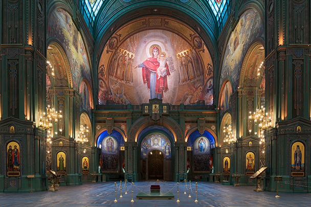 После мы спустимся в Нижний храм, освященный в честь святого равноапостольного князя Владимира, оформление которого поражает роскошью отделки и строгой красотой.