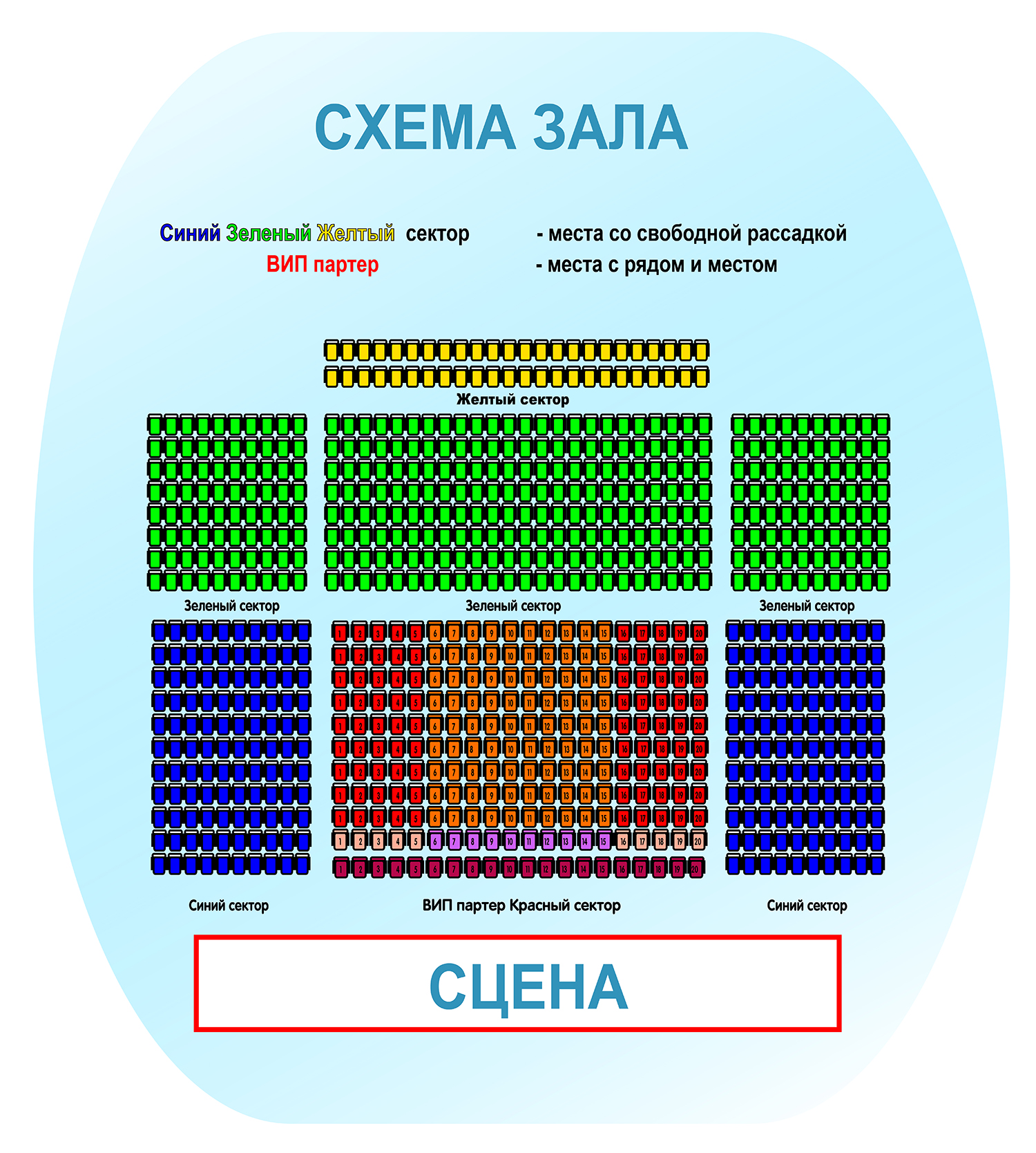 Места в зрительном зале мы устанавливаем таким образом, чтобы происходящее на сцене воспринималось одинаково хорошо из любого сектора, с любого места. Самым маленьким зрителям мы выдаем мягкую подушку, чтобы сидеть было еще комфортнее и выше.