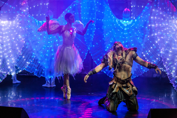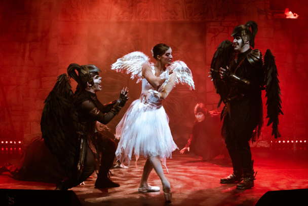 В главной роли (птица Алконост) – классическая балерина, на протяжении спектакля говорящая лишь на языке танца.