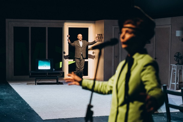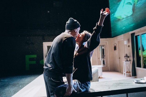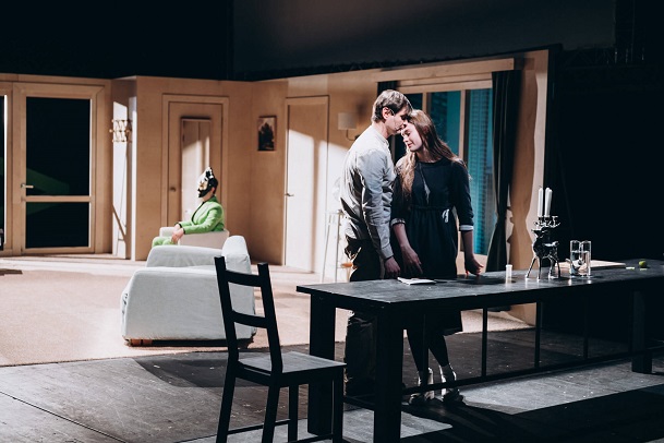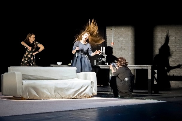 Героиня спектакля «Абьюз» восстает против отца, но сталкивается с сопротивлением родственников и собственными сомнениями. В центре конфликта оказывается маленькая дочь героини, которую у нее пытаются отобрать. В спектакле есть фигура трикстера (Юлия Шимолина), который, все по Бахтину, отвечает за противопоставление трагического карнавальному и за проговаривание примитивного «коллективного сознательного».