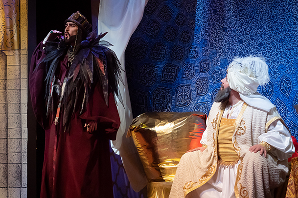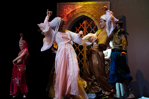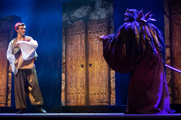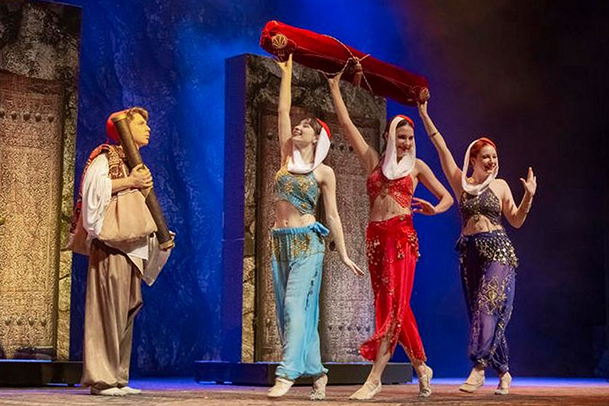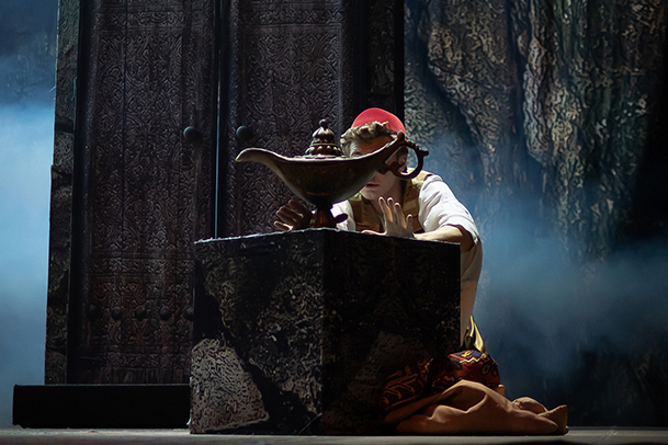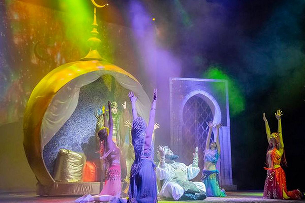 Мы приглашаем вас на удивительное музыкальное представление! Рожденный под счастливой звездой отважный Аладдин преодолевает все препятствия вместе с остроумным джинном Каш-Кашем, получает в награду любовь царевны - красавицы Будур и доказывает, что дружба способна победить все злые силы. Зрителям наверняка запомнится полет на ковре-самолете, яркие танцы восточных красавиц, зажигательный юмор султана Сулеймана, песня чародея Джафара, а чудеса обаятельного джинна Каш-Каша поражают воображение.