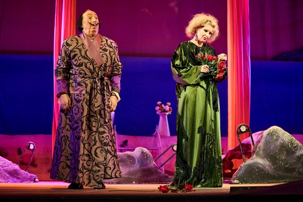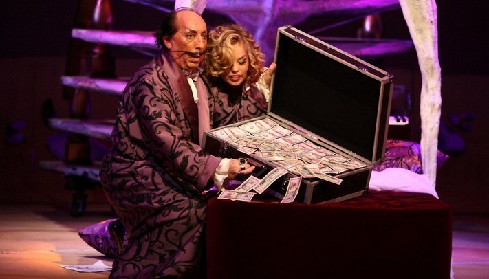 Эксцентричность испанского мастера и экстравагантность его поступков подчёркнуты искромётным юмором и оригинальными режиссёрскими находками, а динамичность действия и неординарность личности художника усиливаются благодаря видеоинсталляциям и декорациям, созданным при участии «русского Дали» — Никаса Сафронова.