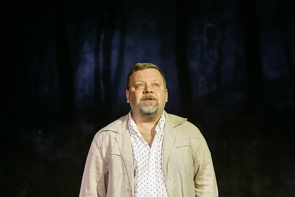 Герой пьесы Андрея Савостьянова «Двое видят двух» по стихотворениям американского писателя XX века, четырёхкратного лауреата Пулитцеровской премии Роберта Фроста - фермер из Новой Англии, примерный семьянин, выбравший изолированное существование в вечном противоборстве с причудами природы. Дом - его убежище, но дверь во внешний мир отворить, оказывается, не так уж сложно.