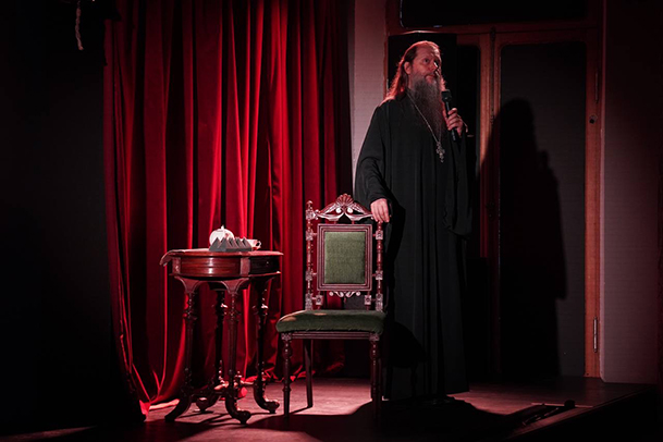 Именно об этом говорит в своих импровизациях отец Артемий Владимиров, который несколько раз останавливает действие удивительного спектакля и напрямую обращается к публике. По каким принципам мы живем сегодня? Можем ли мы сравнить себя с героями, которых видим сейчас на сцене? Как мы говорим? Какую лексику используем? Во что верим? Протоиерей Артемий Владимиров превращает спектакль в откровенный разговор о серьезных вещах. О нашей культуре. О нашем прошлом и будущем.