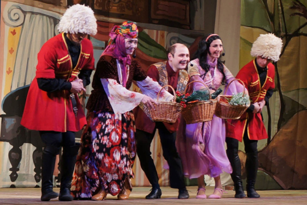 Идеальная музыкальная комедия «Ханума» по одноименной классической грузинской пьесе А. Цагарели. Русский текст В. Константинов и Б. Рацер. Художественный руководитель театра Галина Данелия.