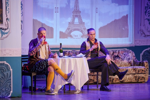 Спектакль наполнен невероятным количеством юмора и множеством гомерически смешных перевоплощений мужчин в женщин, и наоборот, чего до сих пор ещё не было на сцене! Зрители, посмотрев один раз нашу комедию, захотят снова и снова увидеть её, чтоб вновь получить невероятное удовольствие и мощную вакцину смехотерапии.