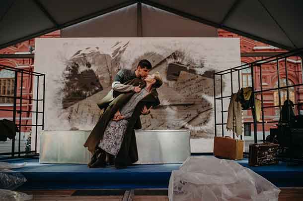 Спектакль создает эффект погружения в то время, зритель находится на площадке с артистами, ощущает запах пороха и дыма. Действие наполнено симфонической музыкой, вокальными партиями в живом исполнении и подлинными кадрами военной кинохроники.