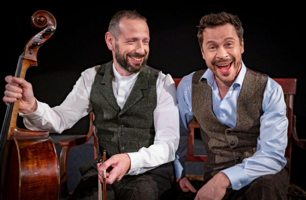 Борис и Павел ловко соединяют блистательное актерское ремесло с виртуозным исполнением музыкальных фрагментов от Баха до Чижика-Пыжика, они и играют, и танцуют, и поют, и читают.
