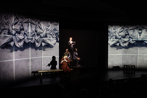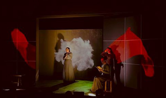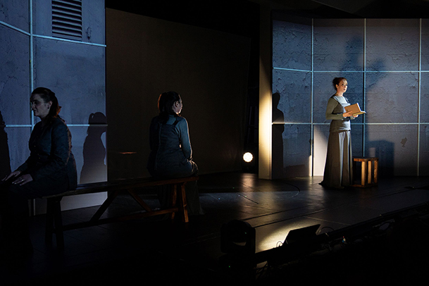 В поэтическом спектакле, поставленном режиссером Александром Легчаковым, жизнь и творчество Анны Долгаревой подняты на уровень высокой трагедии. С первой сцены зрителю предлагается погрузиться в мистическое пространство, в котором нет места бытописанию и реалистическому нарративу. История жизни молодой женщины, нашей современницы, полная ярких событий, драматических коллизий, трагических потерь и глубоких рефлексий, становится историей современной Жанны Д'Арк, которая самоотверженно восходит на костер.