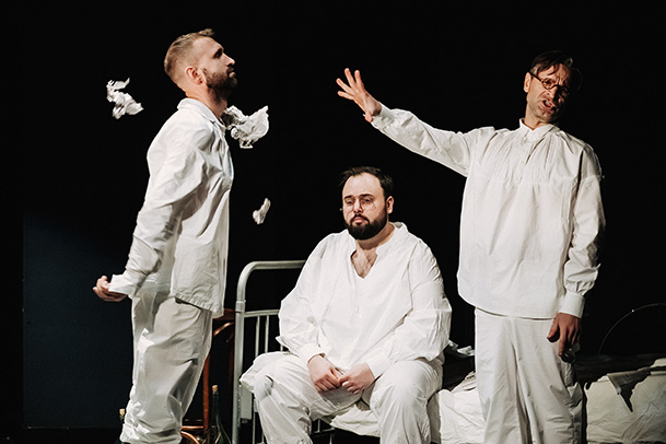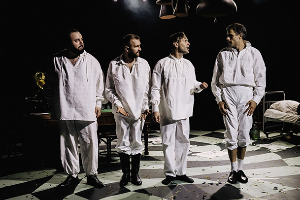 Абсурд... Что может быть актуальнее Чехова, который жил 165 лет назад? Как так может быть? В этой парадоксальности и заключен секрет русской ментальности. Именно в его рассказах встречаются типажи, которые мы узнаем сегодня. И пусть один из его рассказов называется «Психопаты». В нашем спектакле мы хотели бы посмеяться над нашей русскостью и в то же время превознести ее. Потому что она святая, несмотря на всю абсурдность и парадоксальность этой святости. Чехов смеется над персонажами, но при этом любит их. Ирония, но при этом нежность. Абсурд.