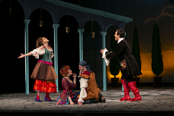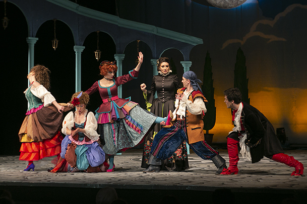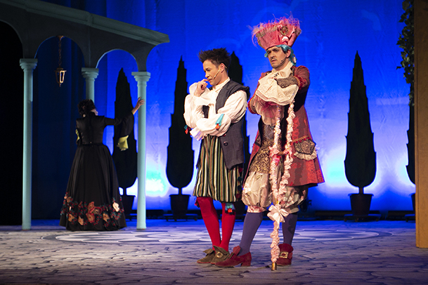 Музыкальная комедия "Собака на сене" - яркий, смешной спектакль, в котором юмор звучит не только в диалогах героев, но и в аутентичной музыке, специально написанной для мюзикла композитором Григорием Ауэрбахом, и в ироничных, ослепительно разноцветных платьях дам и пышных камзолах сеньоров, в забавно комической хореографии Филиппа Черкасова и, конечно, в талантливом исполнении всех ролей блистательными актерами, которые раскрывают образы своих персонажей так эффектно и гротескно, умело балансируя на грани пантомимы и клоунады, что это придает спектаклю особое звучание и запоминается зрителям надолго.