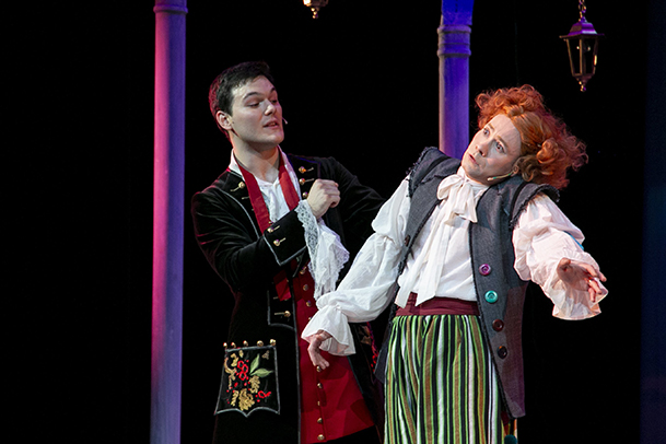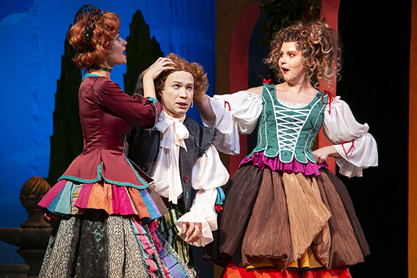 А что Теодоро? Ловелас, умеющий красиво складывать слова, шептать сладкие речи служанкам, попадает в такой вихрь страстей и рока, что впервые понимает: любовь - это не игра, не легкое и веселое ночное приключение, а поединок двух сердец. И в этой схватке, измученный страстью и капризами своенравной Дианы, он наверняка проиграл бы, если бы не верный Тристан. Слуга не может допустить, чтобы Теодоро покинул дом Дианы, он влюблен в служанку Доротею и не хочет следовать за своим хозяином. Тристан придумывает, как превратить Теодоро в дворянина, не уступающего Диане по древности рода и богатству. Выдумка слуги делает счастливыми всех: старый граф Лудовико обретет давно пропавшего сына, Теодоро станет богатым и знатным, гордая Диана, наконец, сможет открыто признаться в своей любви.