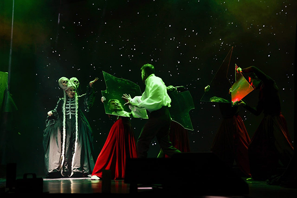 «Вий» - это не просто постановка, это мультижанровый проект, сочетающий в себе элементы драматического театра, мюзикла, современного танца и иммерсивного шоу, в котором режиссер соединил живой вокал и музыкальную партитуру с пластической составляющей. Каждый актер будет передавать внутренний мир персонажа через точные телесные характеристики.